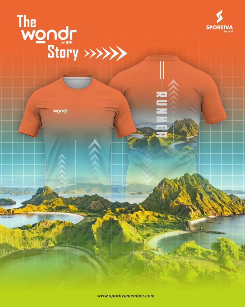 Jersey running yang digunakan oleh Tim BNI 46 pada Fun Run Pulau Padar 2025 diproduksi oleh Sportiva Apparel, penyedia apparel olahraga custom dengan kualitas premium.