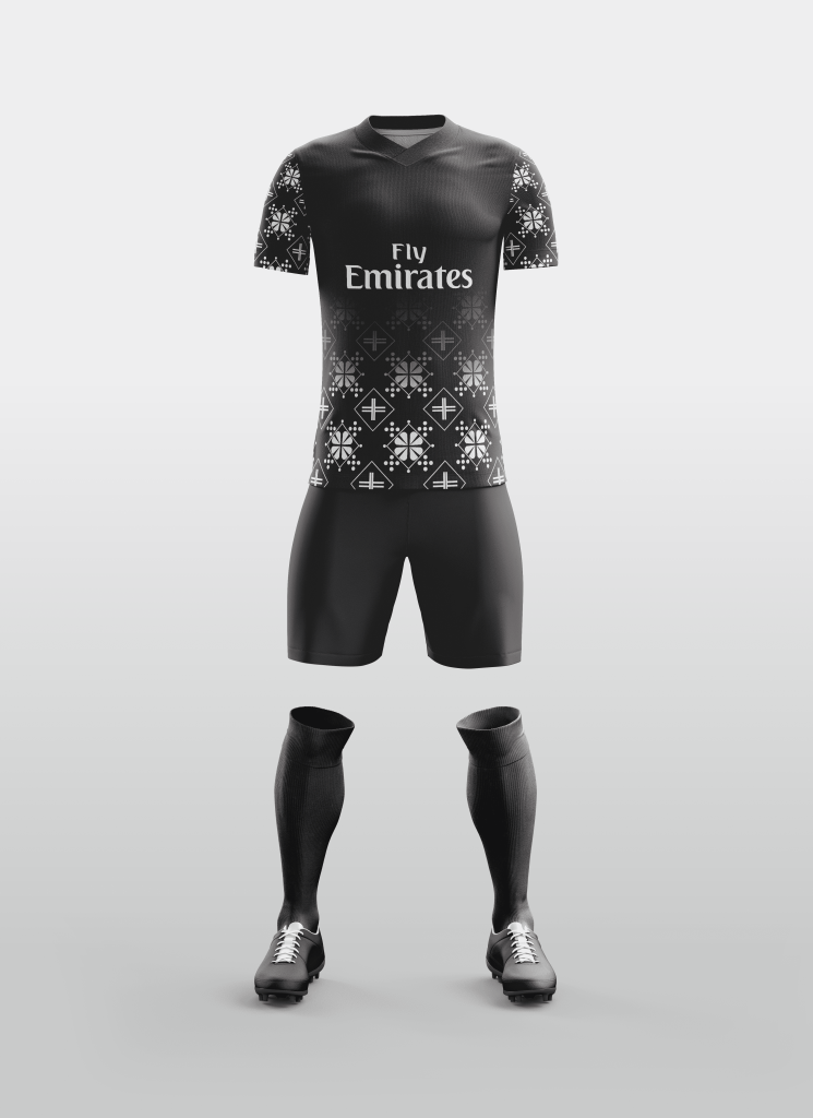 Motif ini memberikan kesan cepat, agresif, dan selaras dengan ritme permainan futsal yang intens.